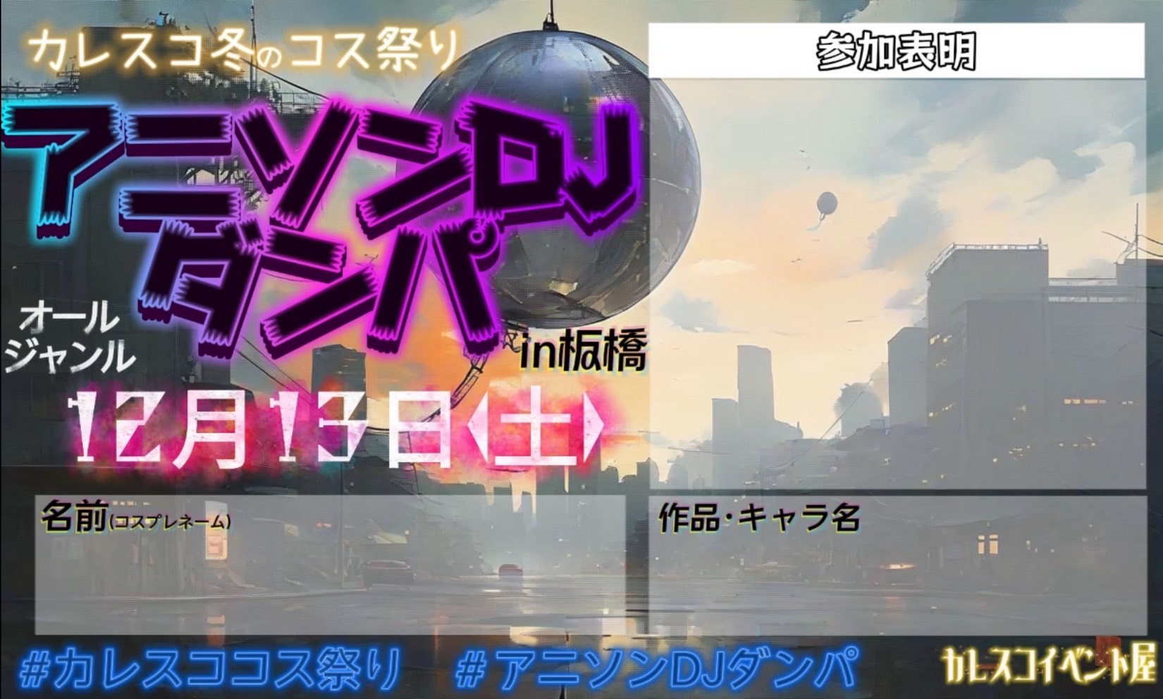 カレスコ 冬のコス祭り「アニソンDJダンパ」は、