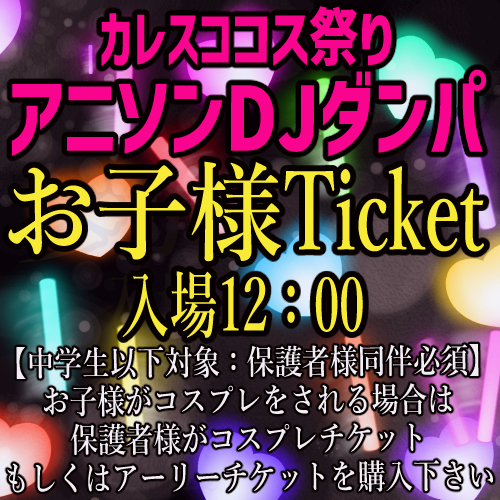 ※お子様がコスプレをせず、保護者様がされる場合は保護者様のチケットのお時間でご来場可能です。